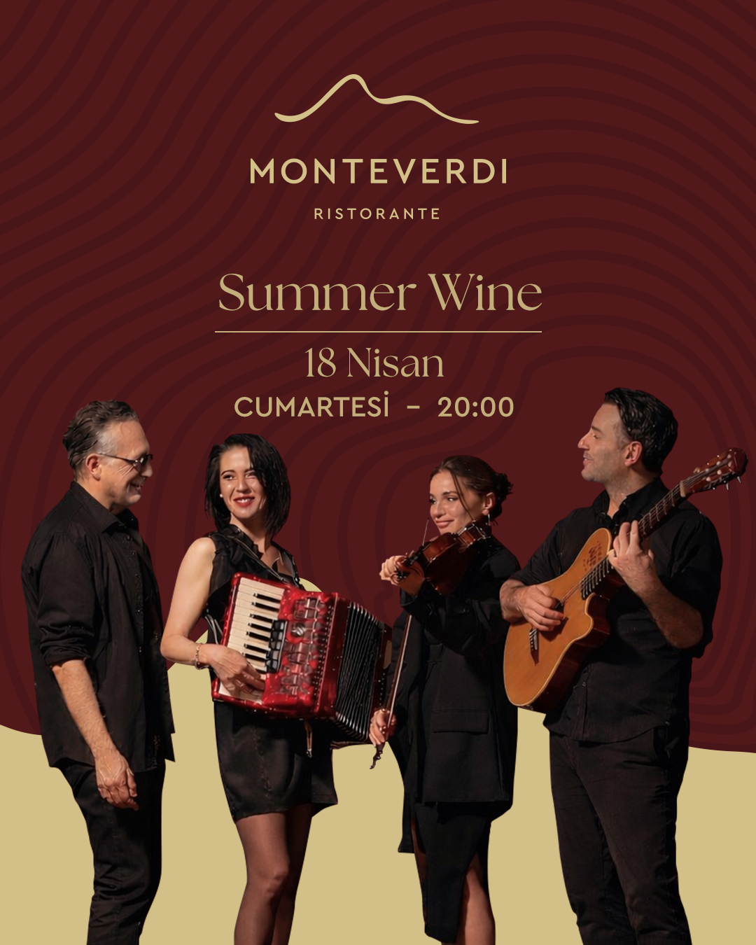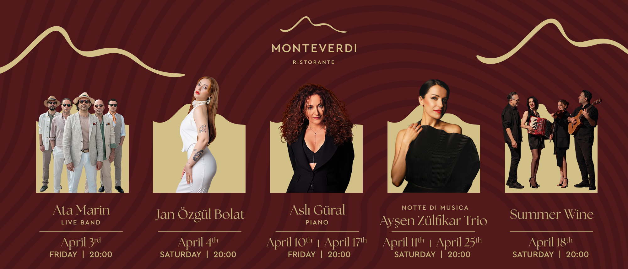 Monteverdi, Nisan ayı boyunca Akdeniz esintili melodiler, caz ve piyano performanslarıyla şekillenen seçkin bir canlı müzik programı sunuyor. Müzik, lezzet ve stilin bir araya geldiği rafine bir akşam için yerinizi ayırtın.